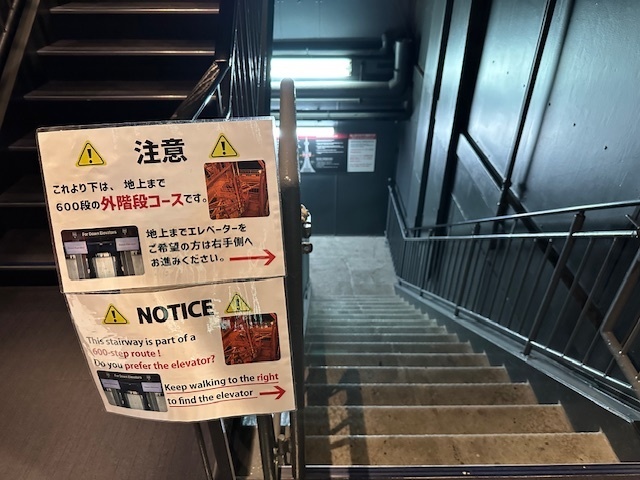 過去に挑戦したゲストの気持ちを知るため、600段の外階段にもチャレンジ。体験して初めて語れる言葉もあります。