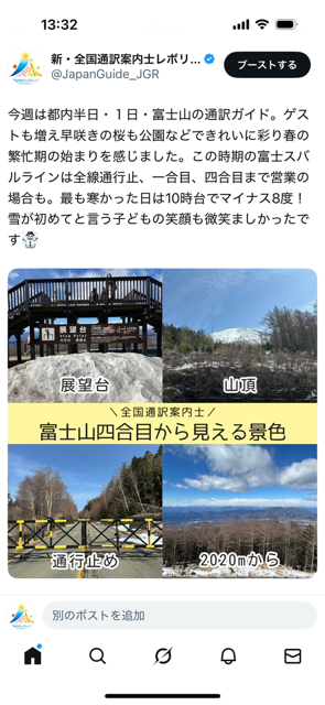 通訳案内士は、個人事業主として稼働する方が多く仲間やチーム意識も大切。複数のツアーバスで他のガイドとご一緒したり、ピンチヒッターを担う、あるいはお願いすることも。渋滞時は運転士さんの助言や経験知に何度も救われます。(2024/07/07)