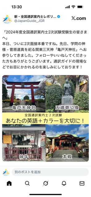 全国通訳案内士試験は、「1次(8月)・2次(12月)」受験生の節目が近づいたころに、通訳ガイドになるという大きな目標や夢に向かう努力に伴走させていただき、ともに歩めることもこの仕事の魅力です。(2024/08/18)