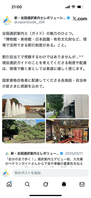 博物館・美術館・日本庭園・有形文化財など、現場で役立つ割引制度が用意されている施設もあります。割引目当てで受験するわけではありませんが、現役ガイドのことを考えてくださる制度や配慮は、現場に立つ者として素直に嬉しく感じます。国家資格合格者に配慮してくださる、各施設・自治体の皆さまに感謝を込めて。(2026/01/24)
