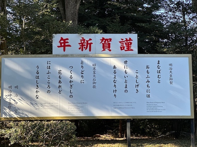 新年の明治神宮。御製に英語と現代語訳が添えられ、100年以上前の和歌が、今を生きる私たちにも静かに響きます。現場は常に進化しており、参拝者や海外ゲストへの配慮も少しずつ形を変えています。そうした変化に気づき、共有できることも、通訳ガイドの醍醐味。(2026/01/18)
